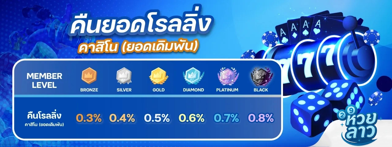 สำหรับสมาชิกที่เล่นประจำ เราก็มีโบนัสรายวันให้ทุกวัน เพียงเข้ามาเล่นและทำยอดตามที่กำหนด รับโบนัสเพิ่มไปเลย 10% ทุกวัน ไม่มีเพดานจำกัด ยิ่งเล่นยิ่งได้ ยิ่งสนุก และที่พิเศษไปกว่านั้น เรายังมีกิจกรรมคืนยอดเสียประจำสัปดาห์ที่จะช่วยบรรเทาความเสียหายให้กับสมาชิก โดยรับคืนสูงสุดถึง 10% ทุกสัปดาห์